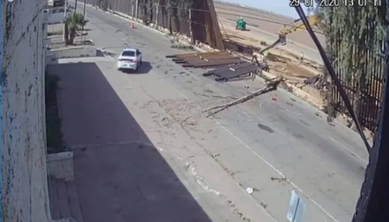 una vecina de Mexicali, varias estructuras metálicas que conforman el muro se