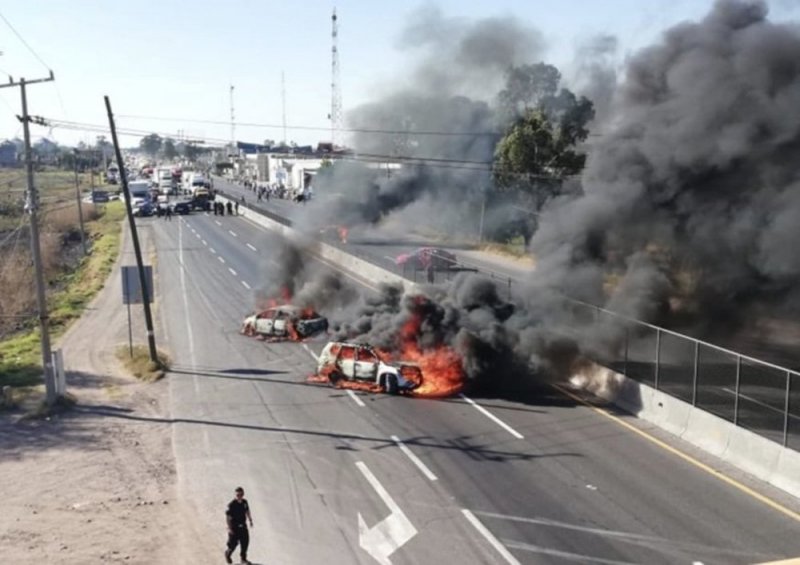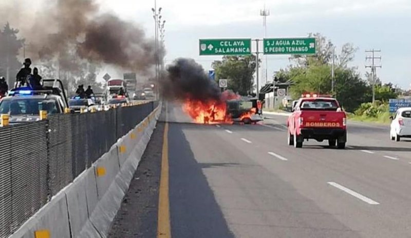 Grupos de hombres bloquean con vehículos y llantas incendiadas diversos tramos carreteros del estado de Guanajuato, en los municipios de Celaya, Salamanca, Juventino Rosas, Salvatierra, Comonfort, Villagrán y Apaseo el Alto, en los límites con el estado de Querétaro, además en las algunas vías tiraron objetos denominado poncha-llantas.