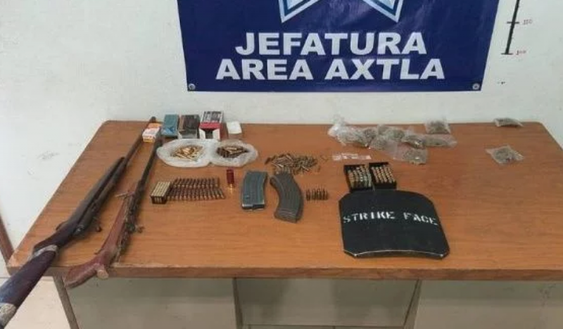 Se trata de una célula del crimen organizado que fue detectada sobre la carretera estatal Axtla- Arroyo de En Medio. Los uniformados recibieron el reporte de detonaciones de arma de fuego por lo que se trasladaron hacia el lugar de los hechos, en coordinación con agentes de la Policía Municipal de Axtla.