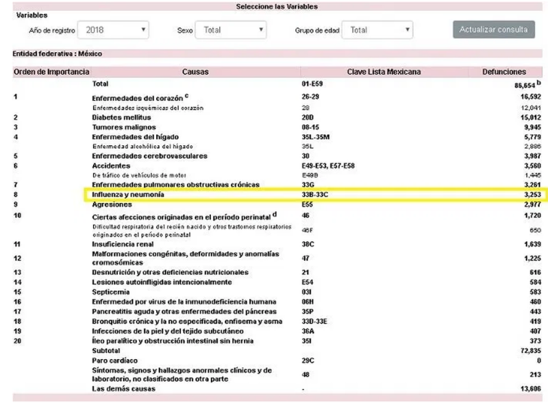 Ahora bien, en el análisis de los últimos datos del INEGI (datos de 2018) se registró la muerte de 28 mil 332 personas por influenza y neumonía en todo el territorio mexicano.