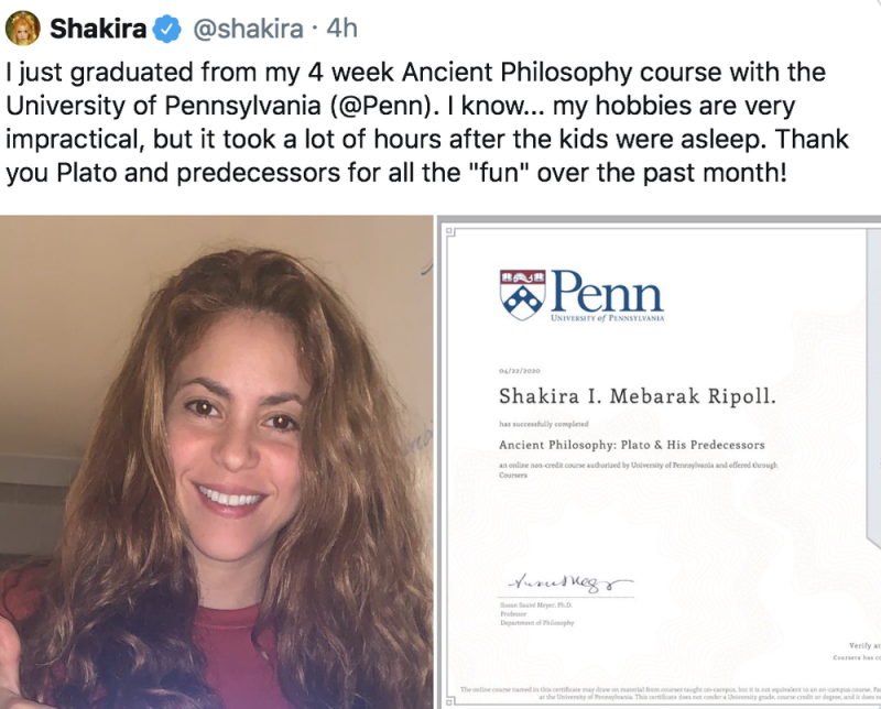 Pero no para Skakira, quien presumió su diploma por parte de Coursera y la Universidad de Pennsylvania.