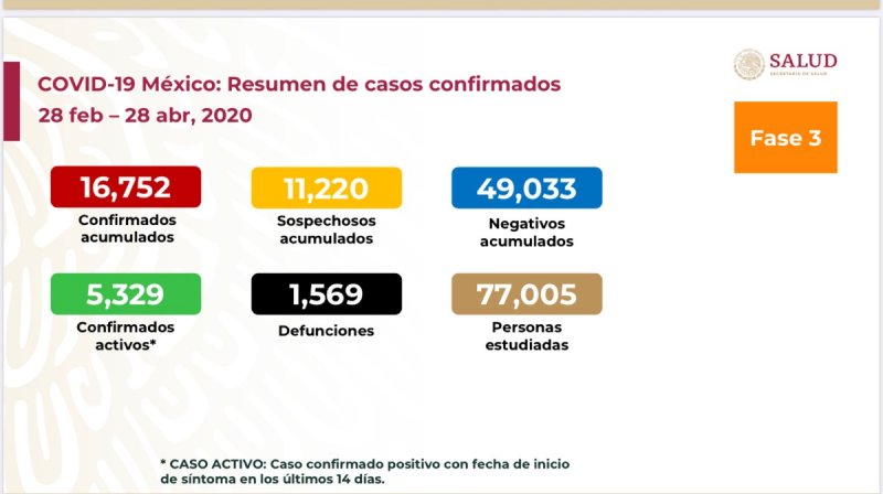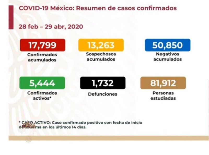 Asimismo, indicaron que la cifra de contagios por Covid-19 incrementó a 17 mil 799, siendo la Ciudad de México y el Estado de México las entidades federativas más afectadas por la enfermedad.