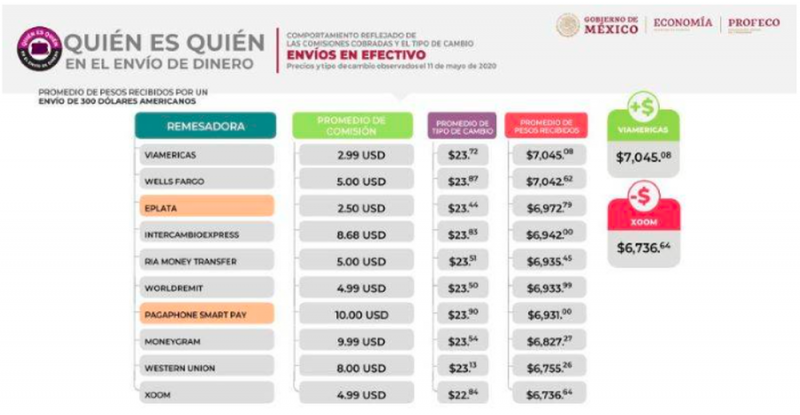 En contraste, Xoom y MoneyGram son las empresas que dan menos por esta misma cantidad de dólares.