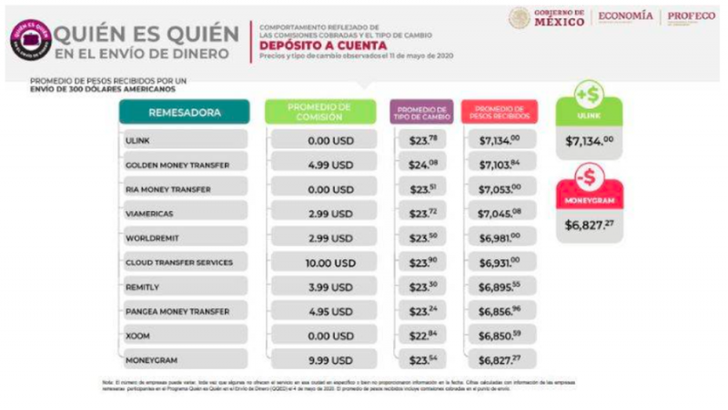 Mientras que ULink paga siete mil 134 pesos en depósito en cuenta por cada 300 dólares.