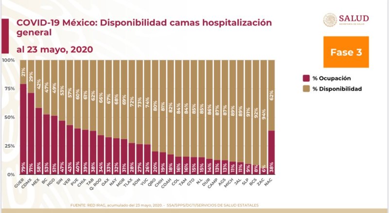 Tan solo las camas habilitadas para atención al Covid del IMSS e ISSSTE, hasta el día de ayer estaban al tope de ocupación; en tanto que los hospitales de la Secretaría de Salud, tenían una ocupación superior al 80%.
