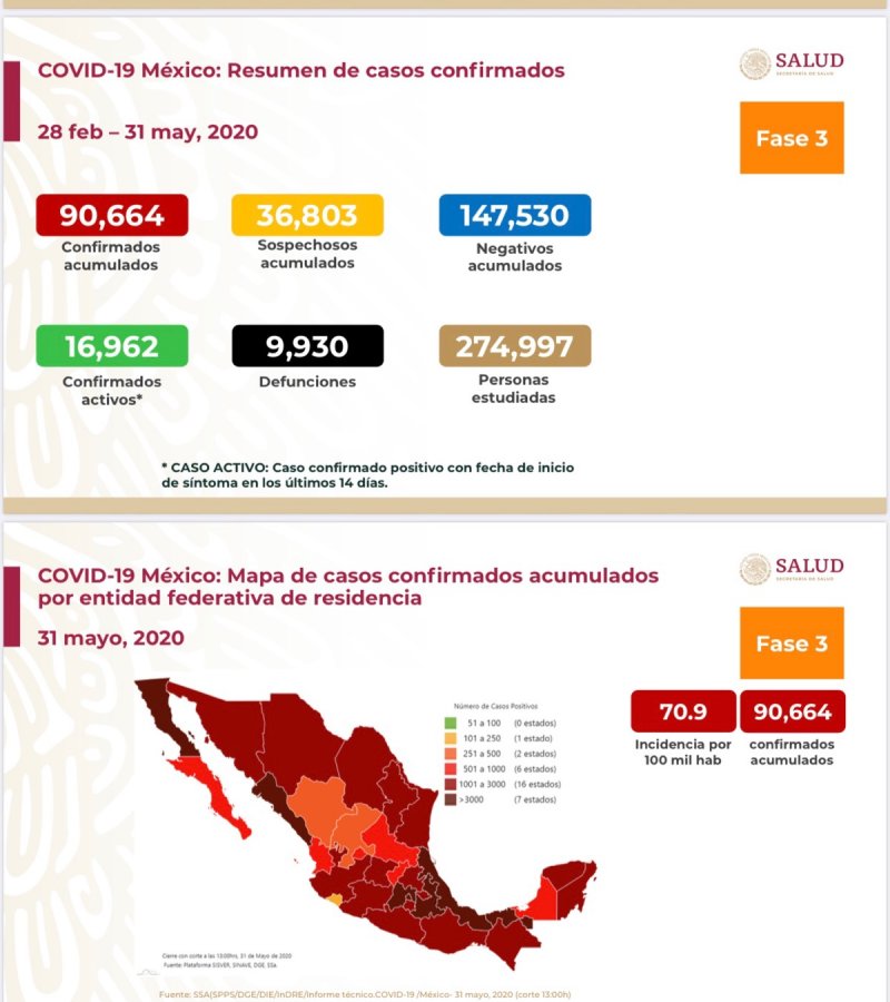 El peligro por la pandemia de covid-19 en México persiste. El número de muertes ascendió a 9 mil 930 mientras que los casos confirmados sumaron 90 mil 664.