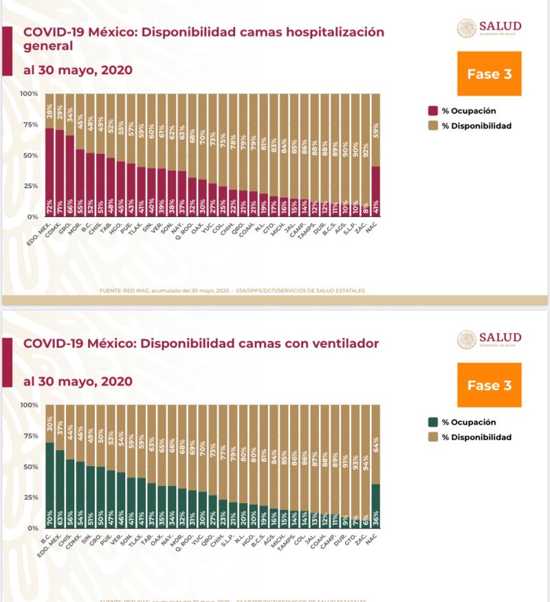 En cuanto a la ocupación hospitalaria, destacó que a nivel nacional hay una disponibilidad de 59% de camas de hospitalización.