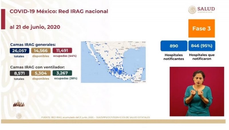 A nivel nacional la ocupación de camas de hospitalización general IRAG (Infección Respiratoria Aguda Grave) es del 44 por ciento, mientras que la de camas con ventilador es del 38 por ciento.