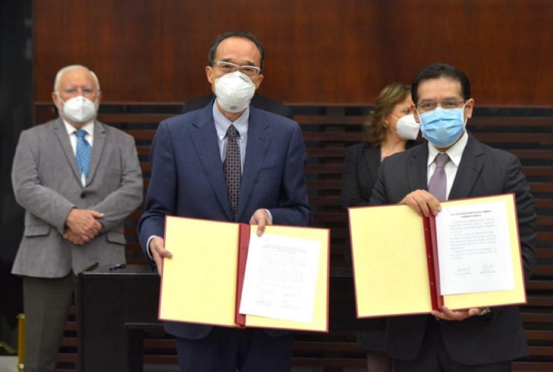 La recepción del equipo médico contó con la presencia del embajador de China en México, Zhu Qingqiao; la subsecretaria para Asuntos Multilaterales y Derechos Humanos de la Secretaría de Relaciones Exteriores (SRE), Martha Delgado Peralta; el titular de la Comisión Federal para la Protección contra Riesgos Sanitarios (Cofepris), José Alonso Novelo Baeza; y el director general del Issste, Luis Antonio Ramírez Pineda.