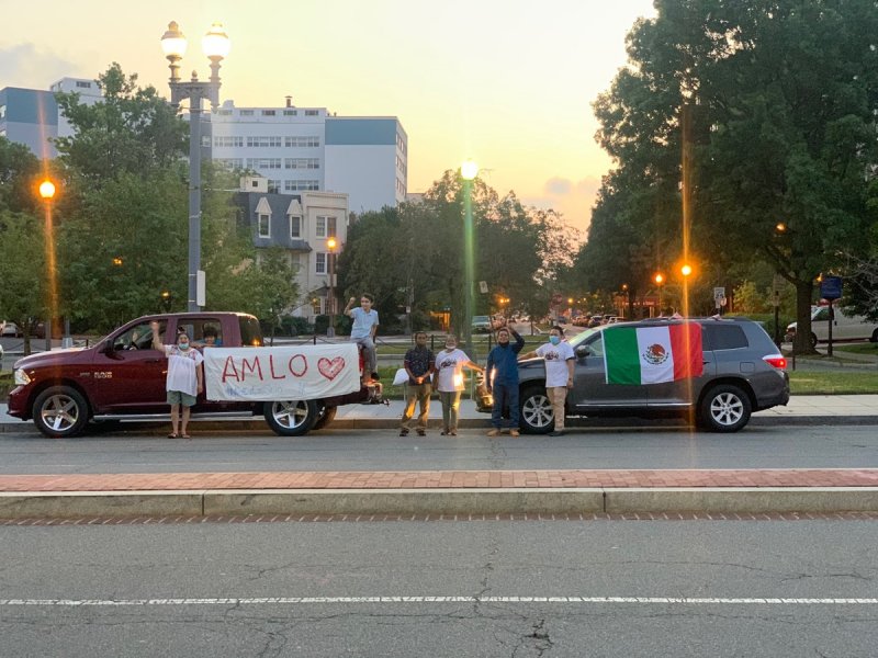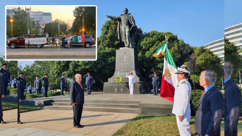 Asimismo, paisanos en Washington se hicieron presentes en el monumento a Benito Juárez en Washington para acompañar Y APOYAR a AMLO. Se pudo ver entre los asistentes mantas de apoyo y gritos a favor del presidente mexicano