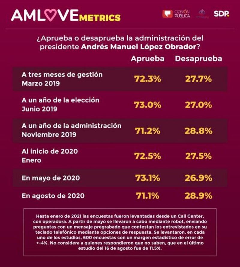 porcentaje de encuestados que aprobaron la gestión de López Obrador alcanzó el