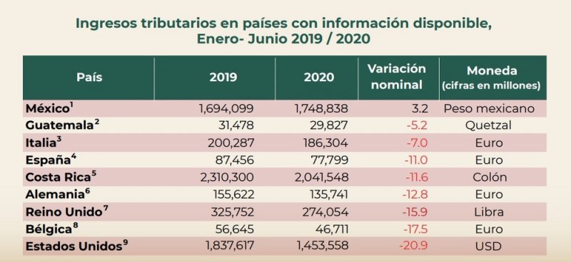 México subió sus ingresos tributarios 3.2 % de enero a junio de 2020, respecto al año anterior y en comparación con otros países, a pesar de la pandemia, informó esta mañana el SAT.