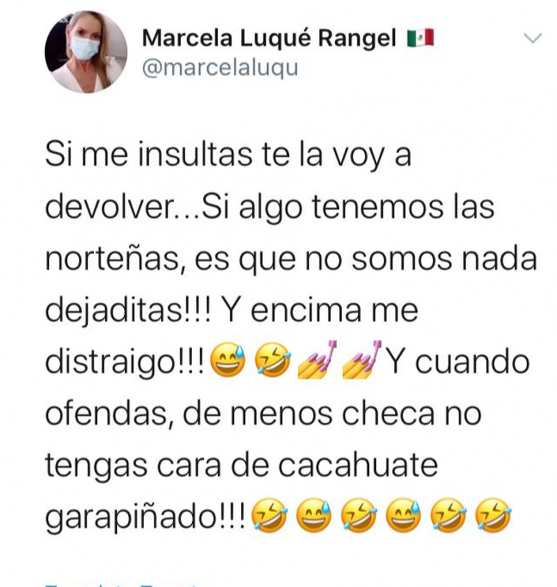 Los tuits donde le señalaban su falta de corrección política seguían mientras ella optaba por responder con denuestos. Incluso se vanaglorió de ser del norte, razón por la que ‘devolvería’ el insulto.