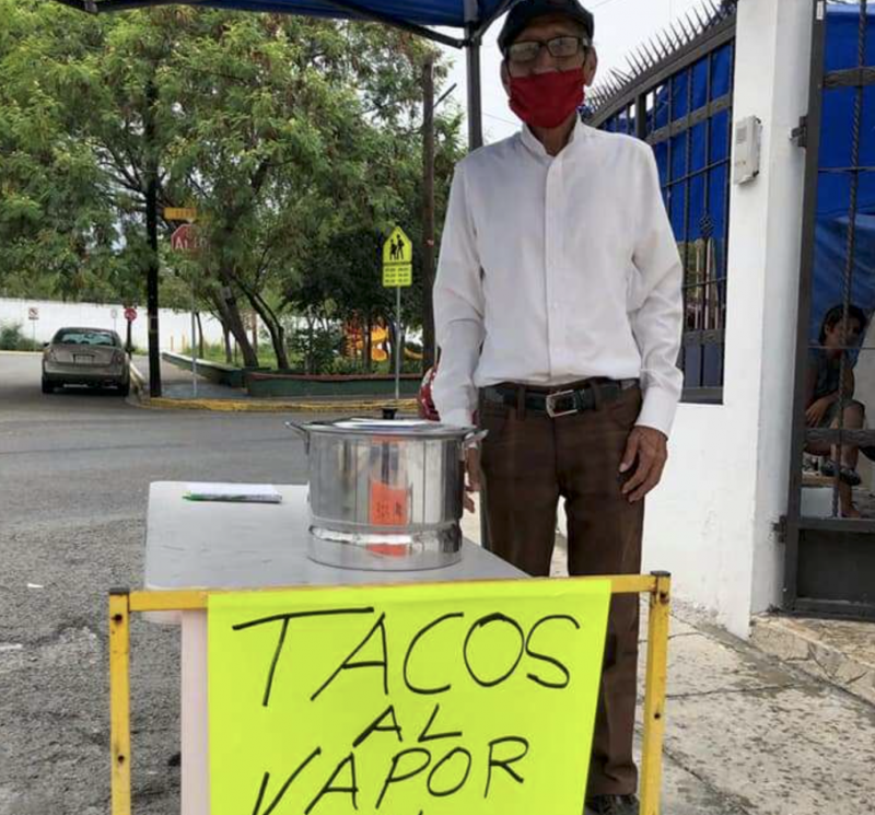 Originario de la colonia Valle de los Cedros, en Monterrey, Don Pepe pone su puesto de tacos de canasta para poder seguir ganando dinero y llevar a casa.