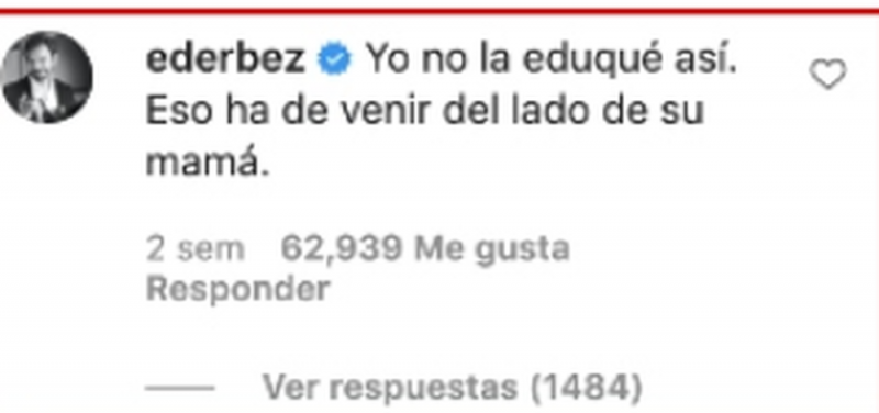 Celar a tu hija y pedirle que no muestre su cuerpo también es violencia de género…Eugenio te tengo apreció y creo que eres un buen actor pero esos comentarios solo propician que las mujeres seamos cosificadas, Soy tu fan, pero Aislinn es una mujer y ella sabe si enseña o no su cuerpo, respeta a tu hija y ni de broma digas esto, fueron algunos de los comentarios que recibió el actor.