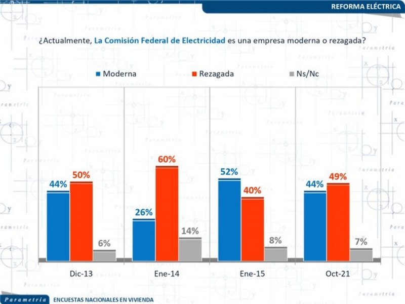 Con relación a la interrogante sobre si la CFE es una empresa moderna o rezagada, el especialista señaló que desde el 2013 los ciudadanos consideran es una empresa rezagada.