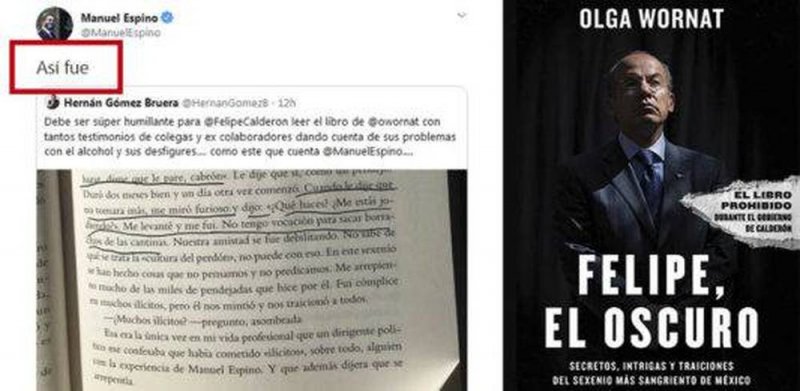 El propio Espino proporcionó la información a la periodista Olga Wornat, quien fue perseguida por el gobierno del expresidente y apenas en la actualidad pudo publicar su libro, «Felipe, el oscuro», que describe aspectos escabrosos del calderonato.