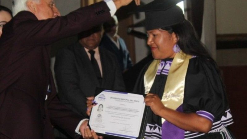 Para celebrar su origen indígena, la mujer recién graduada portó con orgullo su traje tradicional, el cual señaló el comunicador Jaime “fue un ejemplo más, para los jóvenes que no han abandonado sus estudios y que sueñan con tener alguna preparación profesional en el futuro”.