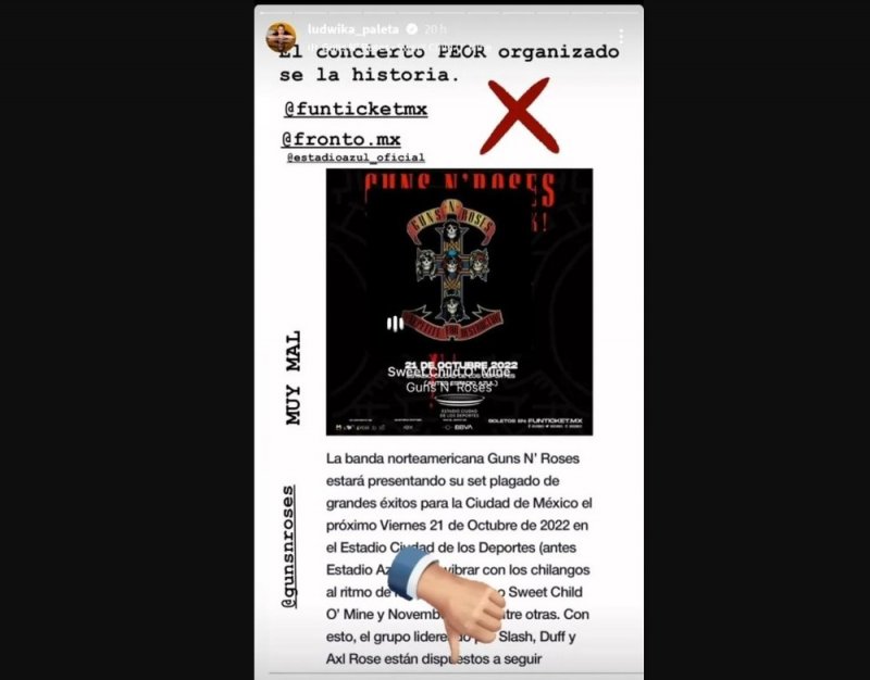 Le niegan la entrada a Ludwika Paleta al concierto de Guns N Roses y exige que le devuelvan su diner