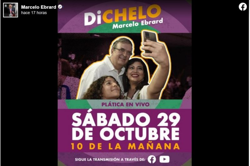 “¡Nos vemos este sábado para escucharles en la primera edición de DiChelo! ¿De qué temas les gustaría que habláramos? Quiero conocer todas sus preocupaciones y opiniones en este espacio. Para eso estoy y para ello lo creamos”, anunció Marcelo Ebrard en Facebook, donde compartió su enlace en YouTube.