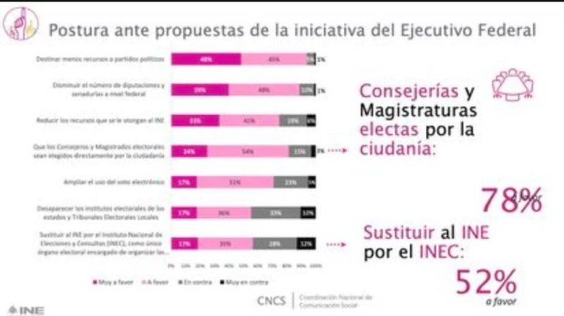 Sin embargo, la propuesta para sustituir al INE por un nuevo Instituto Nacional de Elecciones y Consultas (INEC), lo apoya el 52%.
