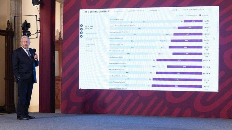 Durante la conferencia de prensa matutina, el presidente mostró la medición que lo coloca en segundo lugar de los mandatarios con mayor popularidad entre los ciudadanos, con el 68 por ciento de aprobación, solo debajo del primer ministro de la India, Narendra Modi, quien cuenta con el 77 por ciento.