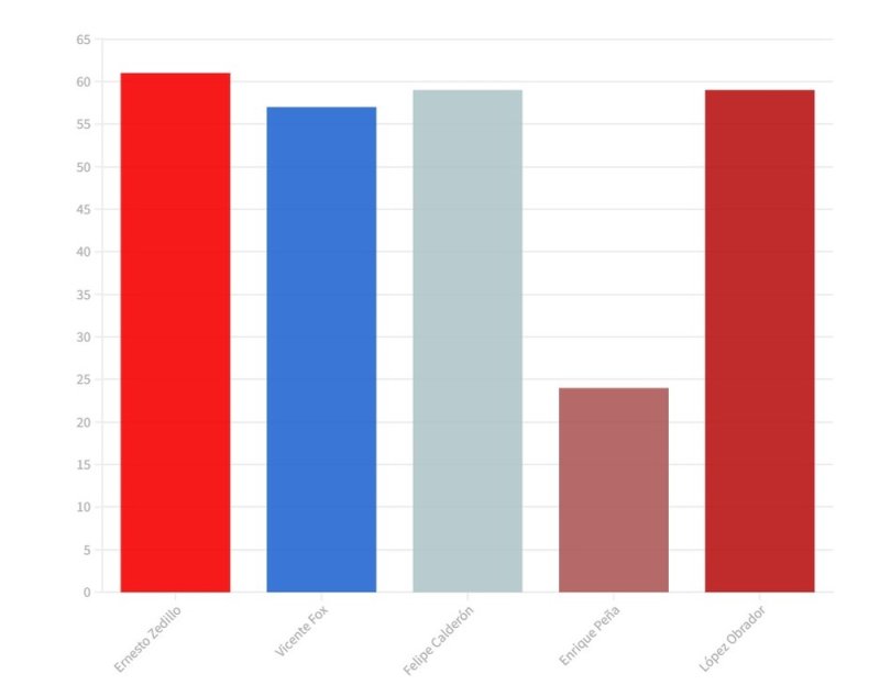 Los datos presentados por el medio nacional revelan que la aceptación de López Obrador es equivalente a los registros que existen de sus antecesores, desde Ernesto Zedillo (1994-2000) hasta Enrique Peña Nieto (2012-2018).