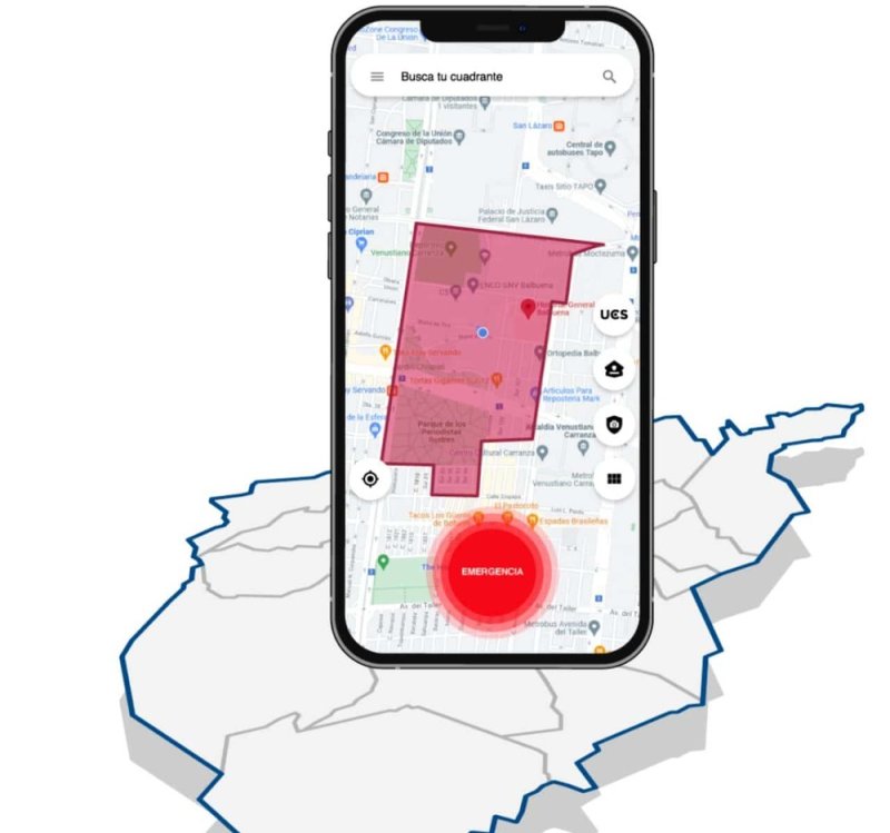 Una vez permitiendo el acceso, la app mostrará el mapa de la Ciudad de México, el cuadrante donde te encuentras y un botón rojo de emergencia con el que se comunicará inmediatamente al 911.