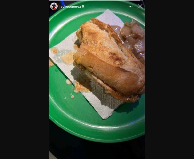 Pérez, que finalizó tercero en el campeonato de pilotos en la temporada 2022 de la Fórmula 1, fue captado comiendo en la calle.
