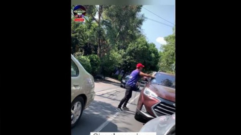 El exconcursante de la temporada cinco de Exatlón se puso la playera de Koje, bajó del auto donde estaba con sus amigos con un trapo y comenzó a ofrecer sus servicios a los automovilistas, quienes en un primer momento se negaron.
