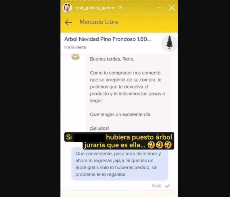 Por lo mostrado por la cuenta Real Gossip Queen de Monterrey, hubo un reclamo un tanto extraño en Mercado Libre por el árbol de Navidad.