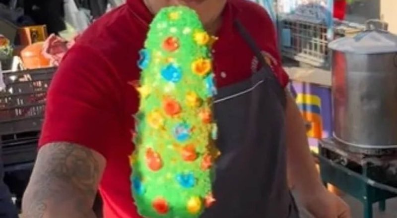 A pocos días de Navidad, se volvió viral el elote navideño, un antojito mexicano con forma de árbol de Navidad.