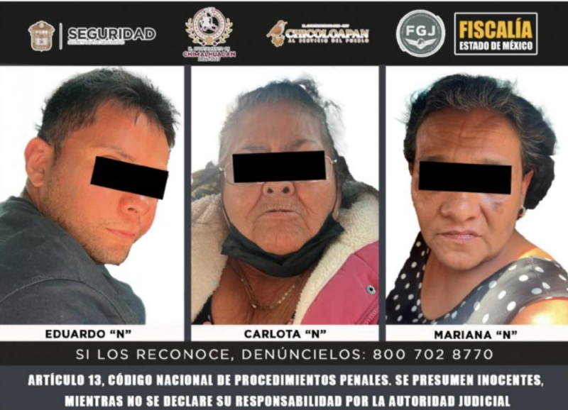 La Fiscalía General de Justicia del Estado de México (FGJEM) informó la detención de Eduardo "N"., Mariana "N". y Carlota "N", conocida como la abuelita involucrada en la muerte de dos hombres durante una presunta disputa por un predio en Chalco, y aue ahora ya sabes quién es.