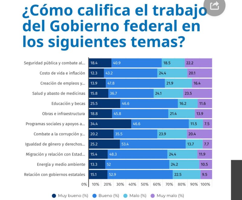 En resumen, la encuesta revela que Sheinbaum no solo mantiene un elevado nivel de aprobación general, sino que también logra avances significativos en temas históricamente complejos como la seguridad, mientras que sus políticas sociales y de género siguen siendo bien recibidas por la población.