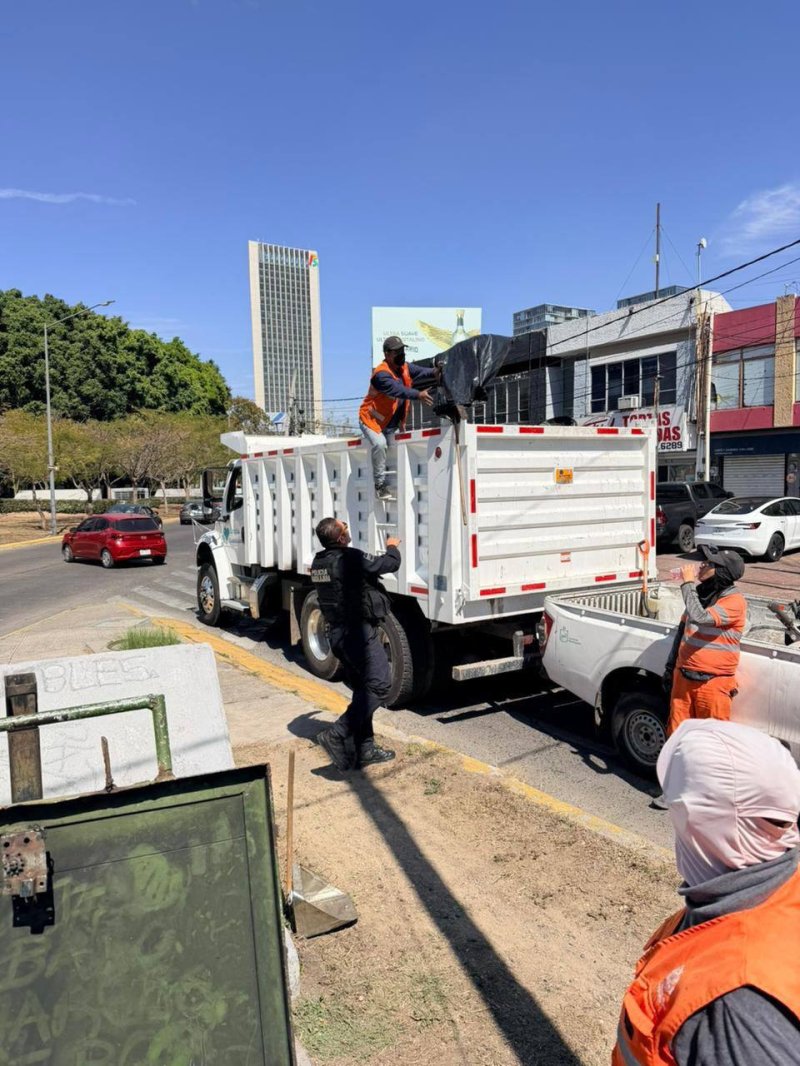 Integrantes de los Escuadrones de Limpieza, con apoyo de policías tapatíos, sacaron cerca de 3 toneladas de desechos, entre tablas, cartones, plásticos y otros tipos de residuos.
