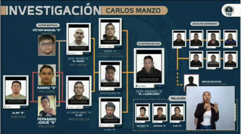 Entre los prófugos se encuentran José Manuel Jiménez Miranda, exjefe de escoltas de Manzo, así como dos personas que se encontraban (en operación criminal) entre Samuel “N” -director de protocolo del Ayuntamiento que brindaba información sobre los movimientos del exedil- así como de José Armando “N”, alias “El Licenciado”, quien es señalado como autor intelectual.