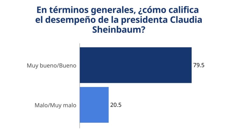 El estudio también señala que cerca de tres cuartas partes de la población —73.9%— respalda la forma en que la titular del Ejecutivo está gobernando el país, lo que refleja un amplio nivel de aceptación entre la ciudadanía.
