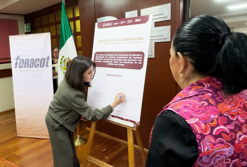 El acuerdo fue encabezado por la directora general de FONACOT, Laura Fernanda Campaña Cerezo, y la titular del DIF nacional, María del Rocío García Pérez, quienes destacaron que esta alianza busca traducirse en beneficios directos para las y los trabajadores.
