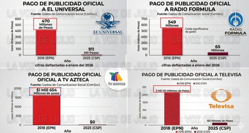 Ataques de medios de derecha serían por mega recorte de publicidad con la 4T